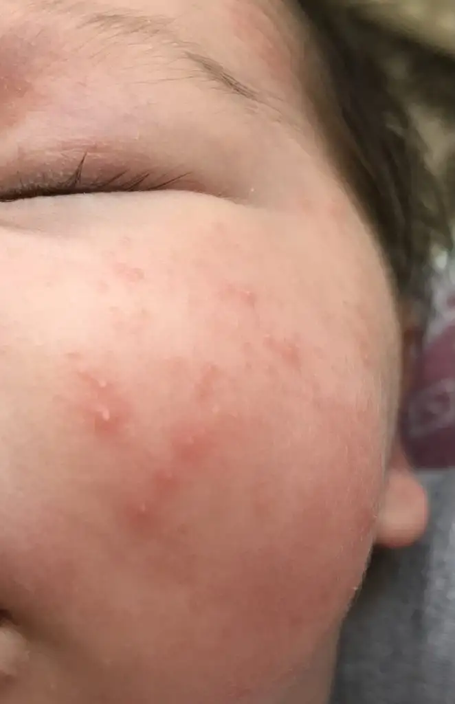 Benimkinde var.doktor normal demişti ama ozamanki döküntüler böyle iltihaplı gibi değildi yanaklarda kırmızıydı.iltihaplı boynunda kafasında vardı ona da normal demişti