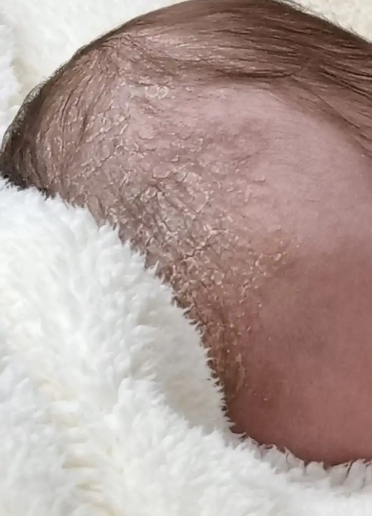 Bizim cilt böyle canım kafası da kupkuru cildi de öyleydi şu sıra düzeldi. Kafası sanki konak gibi görünüyor ama değil konak yağlı oluyormuş sanırım bizde tamamen kuru döküntü oluyor