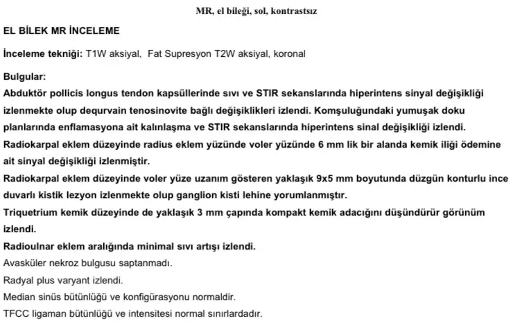 Sol el bilekten mr sonucum var. Doktor mr çektirmeden önce bi şeylerden bahsetti düşündüğüm şeyse ameliyat gerekecek demişti