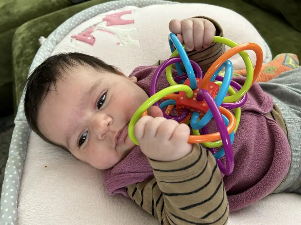 Bunu kasettiKızlar hanii şu yuvarlak top içinde çıngırak gibi kücük top olan oyuncak varya bugün doktor bana onu tavsiye etti. Küçük tek elle tutacağını tutturmaya çalışma bir anda o büyük toptan al iki eliyle kavrasın öyle öyle gelişir dedi kavrama olayı. Biberonunu tutmaya meyilli mesela ordan ne demek istediğini anladım. Biberon geniş ya hemen iki eliyle tutmaya calısıyor ama tekli çıngırağı tutmuyor. O toptan alcam bence