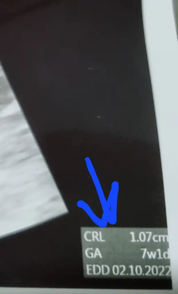 Sağ altta yazıyor, gs kese boyutu, ga kaç hafta kaç günlük olduğu, Crl bebek boyutu