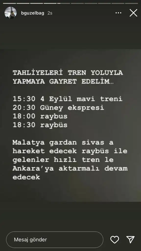 Kuzum ben annemin yanına gidiyorum yoldayım ananemize gidiyoruz babannemizi çadırda biraktik bebisimiz hasta olmasin diye memlekete gidiyoruz çok şükür iyiyiz bebisimde hasta olmadı binlerce kez şükürler olsun Rabbim hastalara şifalar versin inşallah biz cadirdayken bı ses daha geldi apartman yıkıldı sanırım sonra ambulans sesleri ben başladım ağlamaya duramadim orada artik