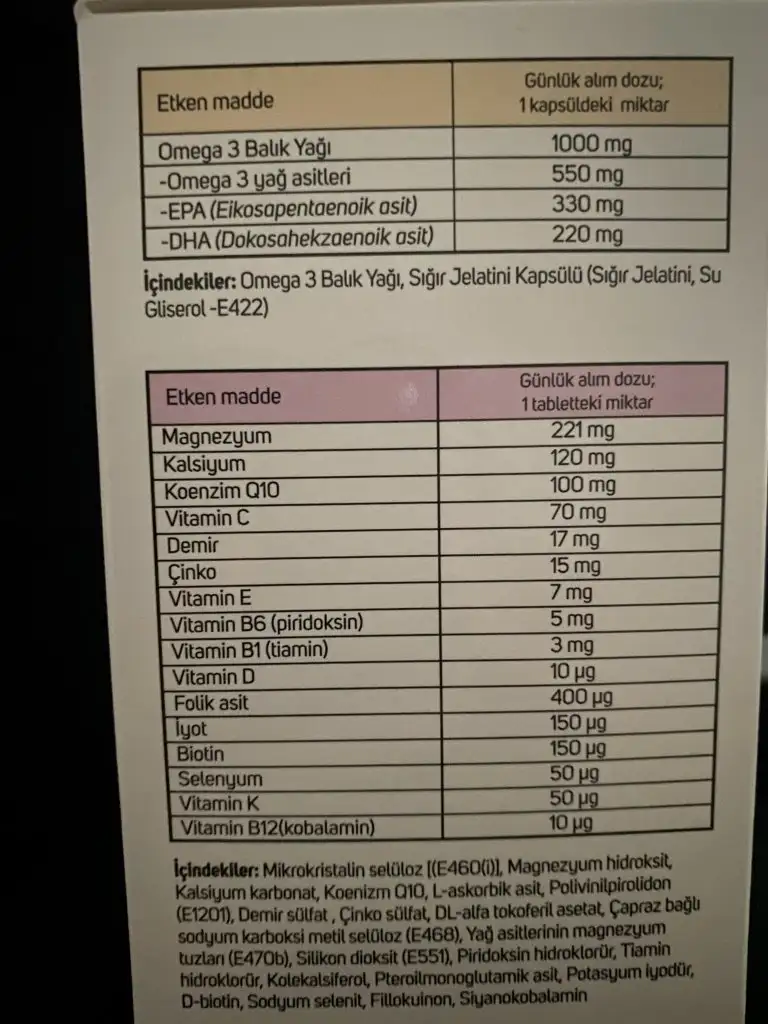 Tesekkur ederimBen de omegrav diye bir şey kullanıyorum. İnternette filan pek göremedim ama içeriğini araştırdım baya iyi. 30 omega 3 kapsülü var 30 da multivitamin kapsülü , içeriğini attım bakmak istersen