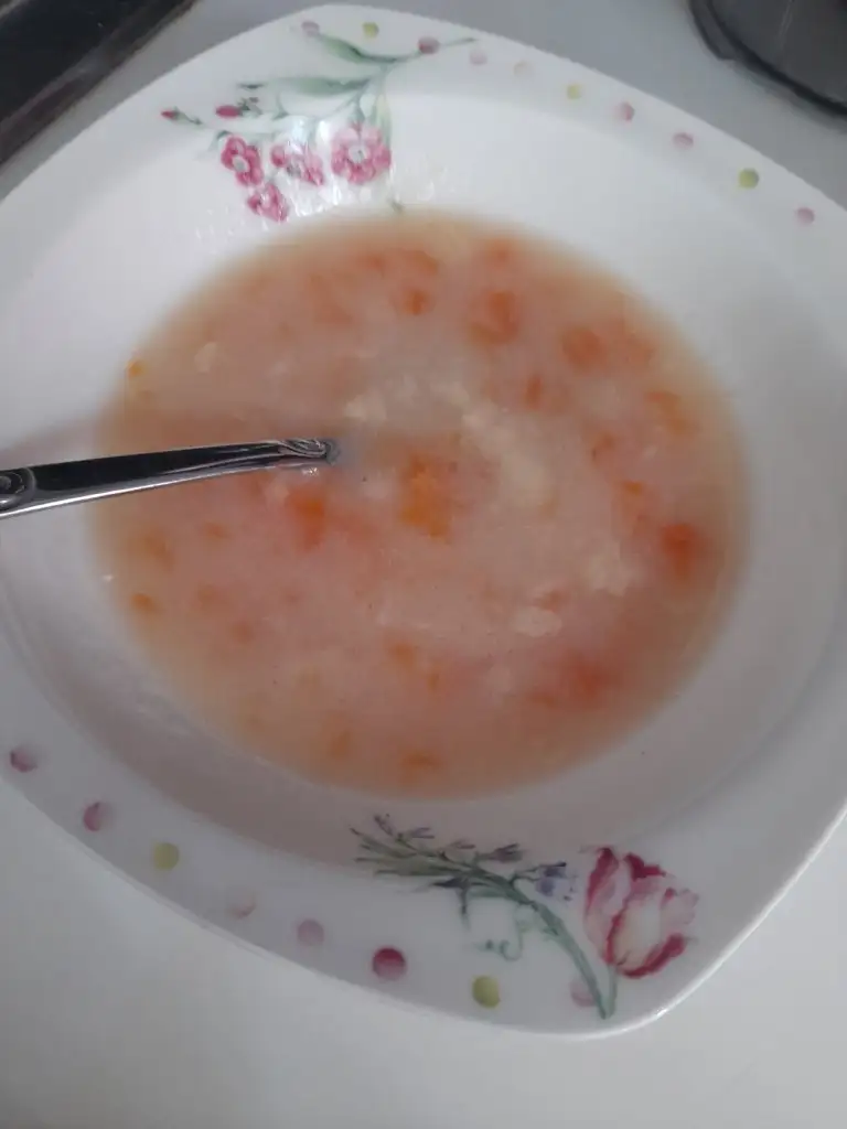 tarif veriyorum 1,5 elma rendesi, yarim cennet hurmasi, 1tatli kasigi tepeleme yulaf unu, pisirirken yanmasin diye azcik su ve 1 yumurta sarisi, elmayla yulafi azcik su ekleyip pisirdim, sonra digerlerini ekledim hop blendr yaptm, bunu iki seferlik yedirmek icin fazla yaptim