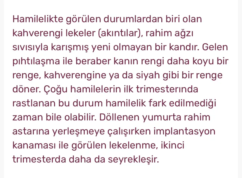 Yok kuzum çok şükür az önce baktım kesildii gibi çok şükürr gördüğüm gibi hemen geldim yazdım size sağoll kuzuuu içim rahatladııbak demiş ki ilk trimesterda olur, hatta 2. trimesterde de olur ama seyrek olur demiş