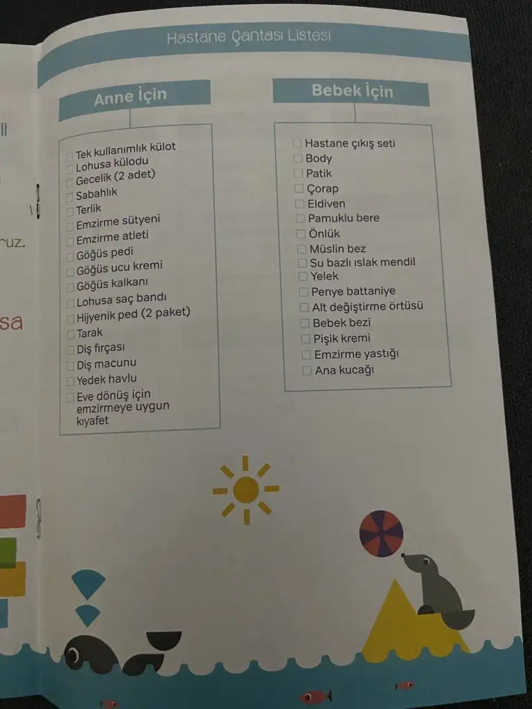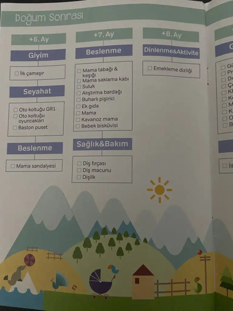 sonra kadın bi tane doğum listesi verdi, bunlar size lâzım olacak falan defi ama benim kafa gitti tabii