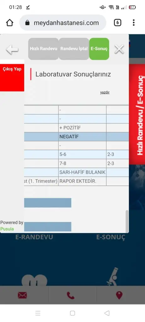 Hastane e sonuc sayfasında da aynı kafayı yicem ya