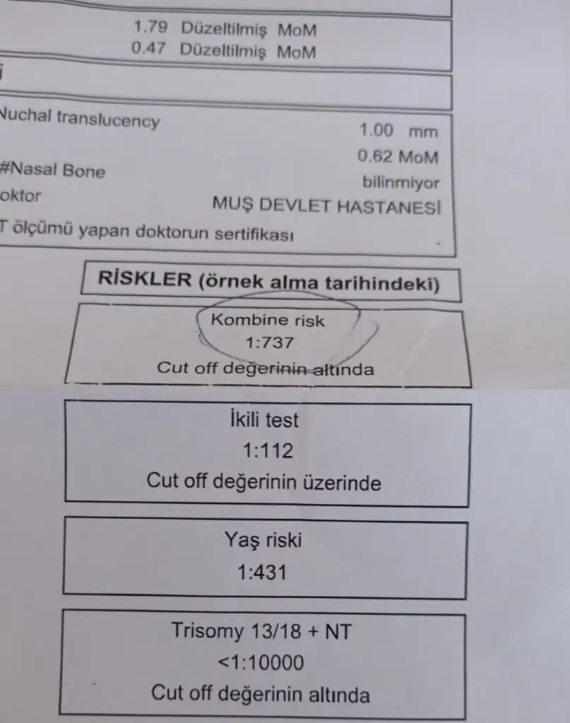 İki kuzenime de riskli dediler sağlıklı doğdular ,ilk doktor sorun yok dedi, zaten akrabalarımda da çıktığı için rahattım , sonraki iki doktor aksatma üstüne düş diyince içime sıkıntı oldu