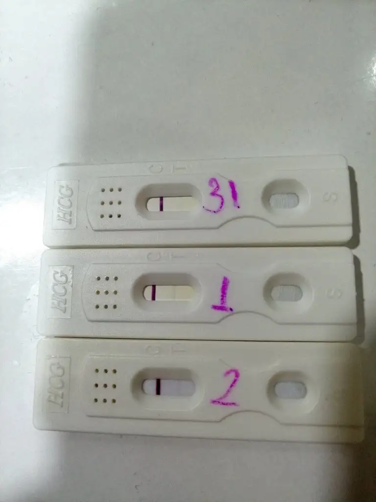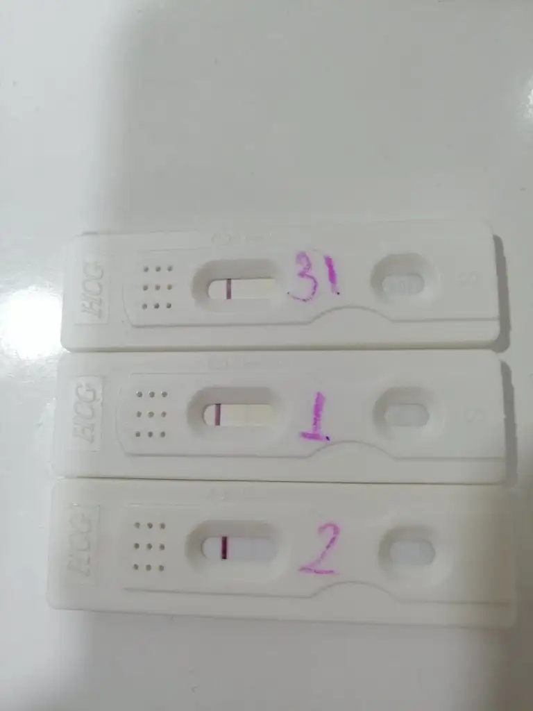 benim normalde bugün adet günüm ama ben dayanamadım 3 gün öncesinden testlere başladım ve sonuçları aşağıdakiler. Bunlar erken gebelik testi değil normal kaset test. Başta gebelik falan sandım çok sevindim umutlandım çünkü çizgiler ilk 10 dakikada belirginleşmişti kuruma çizgileri değillerdi yani. Ama sorun şu ki ben ilk testi yaptığım günün akşamında kahverengi lekelenme gördüm önce korktum dedim adet mi olucam acaba, ama sonra belki yerleşme kanamasıdır diye düşündüm. Yoğun bir akıntı değil bildiğiniz lekelenme şeklinde kahverengi akıntı, ve hala da devam ediyor