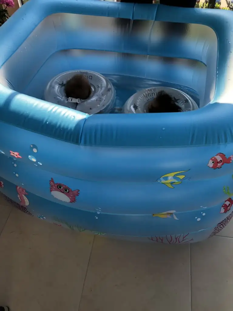 Yerim kafa simitlerini onlarin!! Dogdular buyuduler de yuzuyorlar.Yani aslında pek abarttığımızı düşünmüyordum. İnternetteki hareketlere bakarak yapıyorduk. Yüzme/su jimnastiğine benzer eşim şu havuzu ve kafa simitlerini aldı. Epey keyif alıyorlar sıpalar