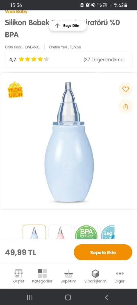 Ben de aynısını kullanıyorum. Serum fizyolojiği sırayla 2 burna da sıktıktan sonra, önce bebeği ters çevirip sırtına pıt pıt vurup pisliğin aşağı inmesini ve suyun boşalmasını sağlıyorum, ardından bunu önce elimde sıkıyorum, sıkılı haldeyken bebeğin burun deliğine yerleştirip serbest bırakıyorum. Vakum etkisiyle yumuşayan pisliği çekiyor. Doğduğu ilk haftadan itibaren kullandım, gayet memnunum ve pahalı bir şey almaya gerek yok bence, gayet yeterli. Ucu tek kullanımlık değil temizleyip kullanabilirsin. Zedelenirse tabi kullanmamak lazım. Ucu ayrı satılıyor mu bilmiyorum ama zaten uygun fiyatlı bir şey.Çok teşekkür ederim.Kullanımı Nasıl peki kolay mı?