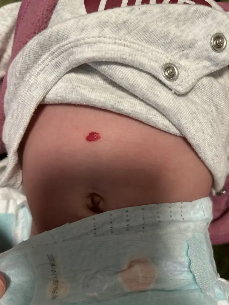 gecer buyuk ihtimalle buyuyunce . bak benim kizin karninda da damarla ilgili bir iz var . giderek kalinlasicak dedi. 3-5 seneye de gecer dedi