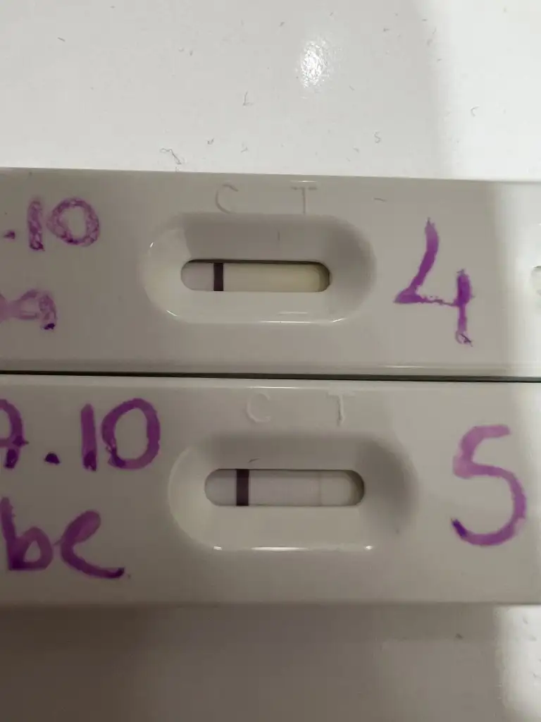 Çizgi 5 dk içinde belirdi ama ben kuruduktan sonra çektim fotoğrafı, evde çok test var dayanamayıp yapıyorum sanırım yarın da yapıcam🤣🤣🤣 benim dondurulmuş embriyo bu arada
