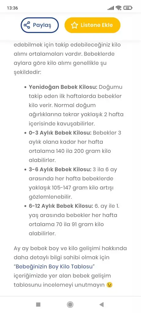 13 gün önce 7100 çıkmıştı kiyafetsiz. Şimdi kucağımda tarttim 7500 çıktı .100 Gr kıyafete saydım 7400. Yani 300 Gr almış iki haftada .şöyle bişey buldum internette .burdaki değerlere göre haftalık kilo alımı 150 Gr bnmkinin.iyi gözüküyor .Kilo alımında sıkıntı yaşadınız mı peki o dönemde