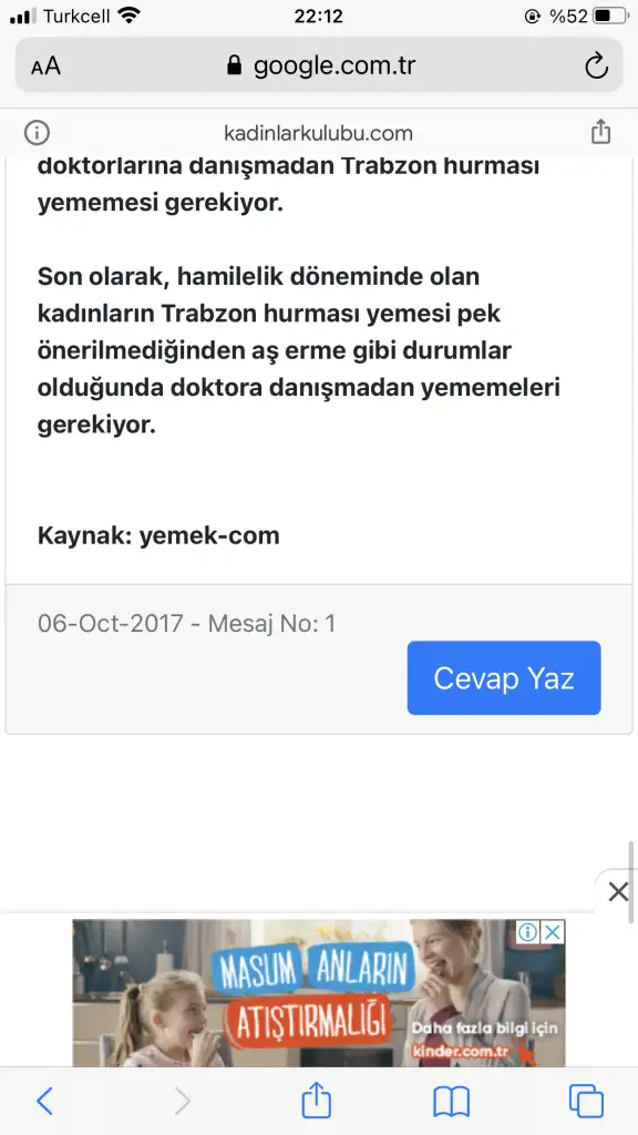 Canım cennet hurması normal hurmadan çok farklı o yüzden yemek yasak değil diye biliyorumKızlar hamilelikte hurma yemek yasak ya, cennet hurması yemek yasak mı ya bazıları trabzon hurması da diyor. Şöyle bi tahin cevizle yesem diye geçiyo gözümün önündenama yanlış bi şey yapmış olmiyim diye yemiyorum. Doktora gidicek olan da sorabilir mi acaba? Benim kızın sevincinden aklım gitti o gün her şeyi unuttum