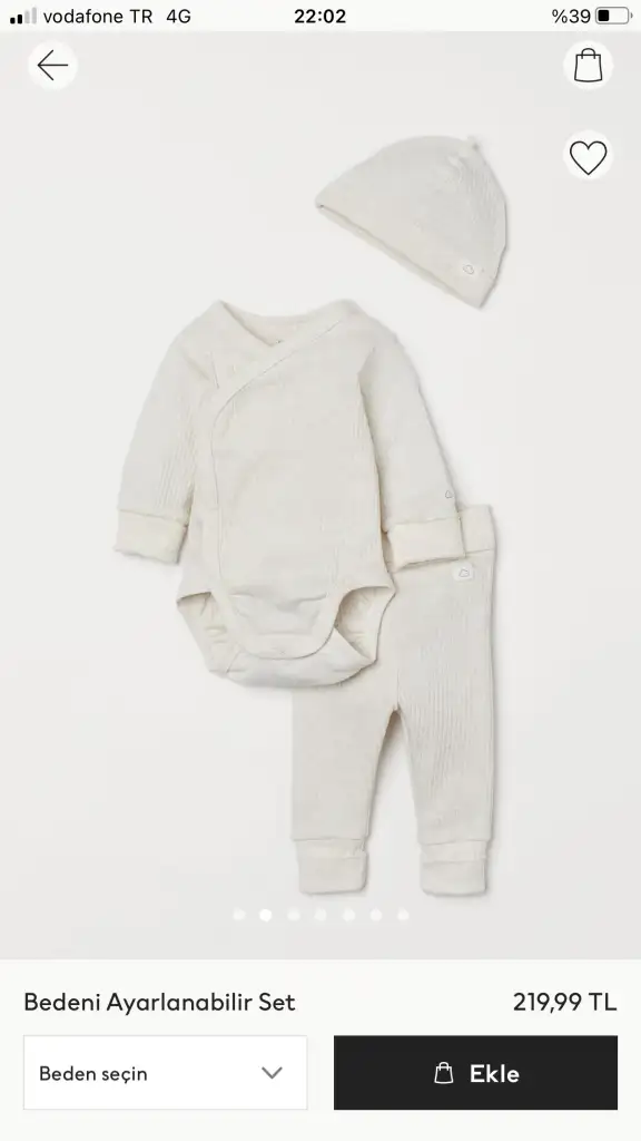 Ya da hm setlerinden alabilirsiniz hastane çıkışı gibi tek beden olmuyor biraz daha büyük tercih edebilirsiniz.