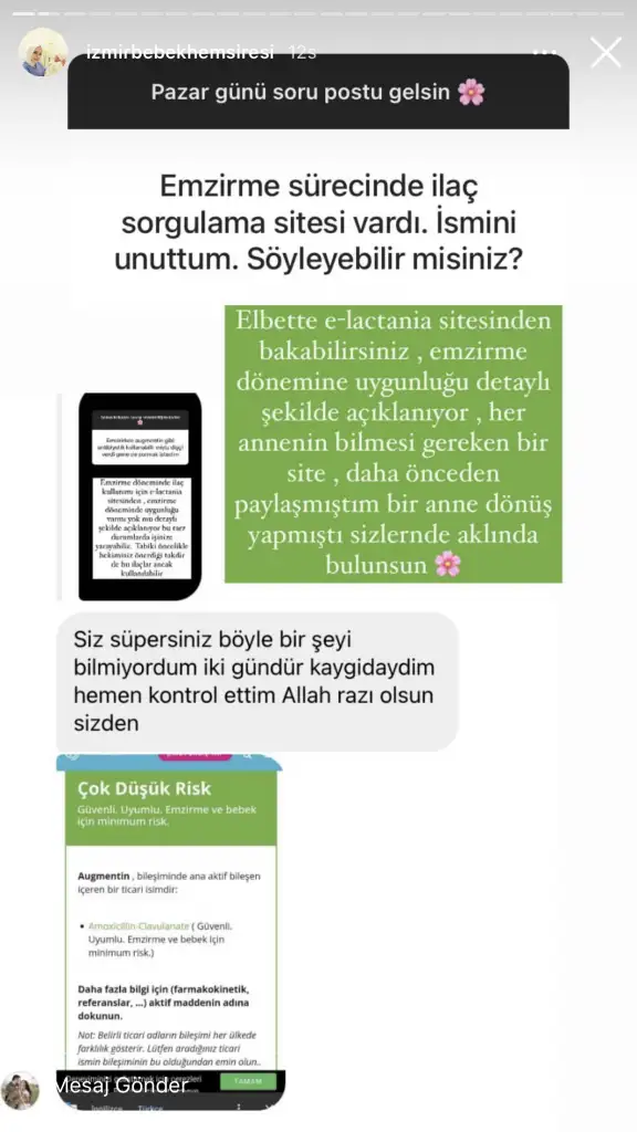 Evet canim gece oraya da baktim.Sabah hem 2 aylik kontrole götürdüm Ela yi hem kendim bir daha gittim.Ilac içebilirsin dediler ama ilaçta etki etmiyor ,parol hic etmiyor ,o kadar canim yaniyor ki basliycam emzirmesine diyip arvelesi atasım geliyor ağzıma sonra bakıyorum kıyamıyorum, delirecem acidanŞöyle bi site varmış emzirme dönemindeki ilaçlar için sorgulama yapılabiliyormuş, bi sorgula istersen canım çok geçmiş olsun ya anneyken hasta olmak çok zor olmalı