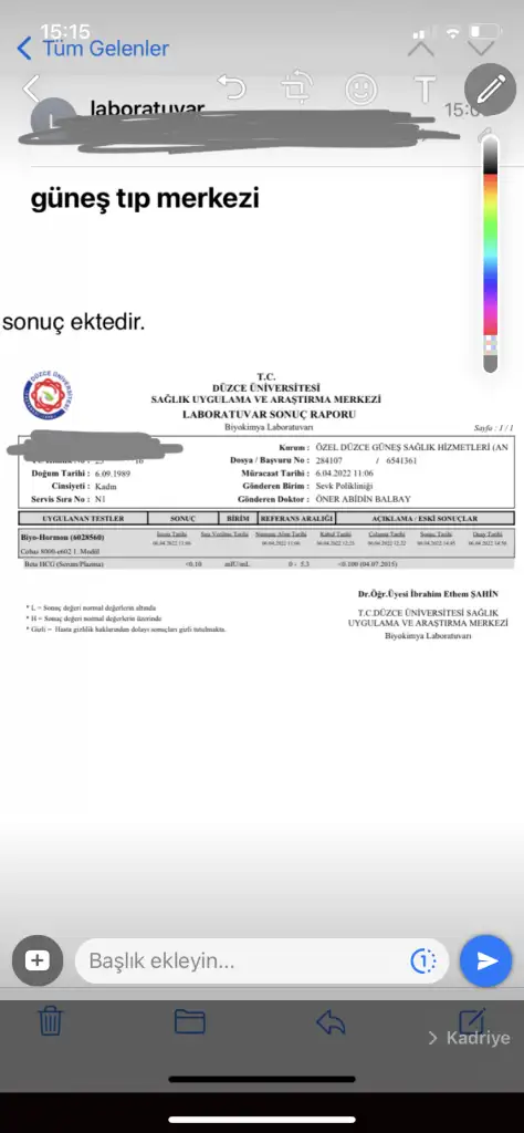 Ama sonradan çıktınet görünüyor hamilesin kuzum bence hemen kan ver