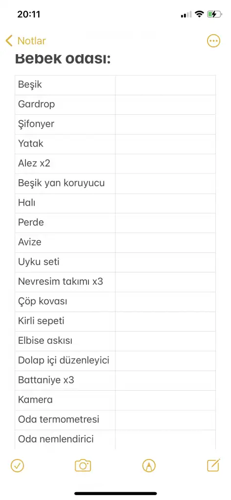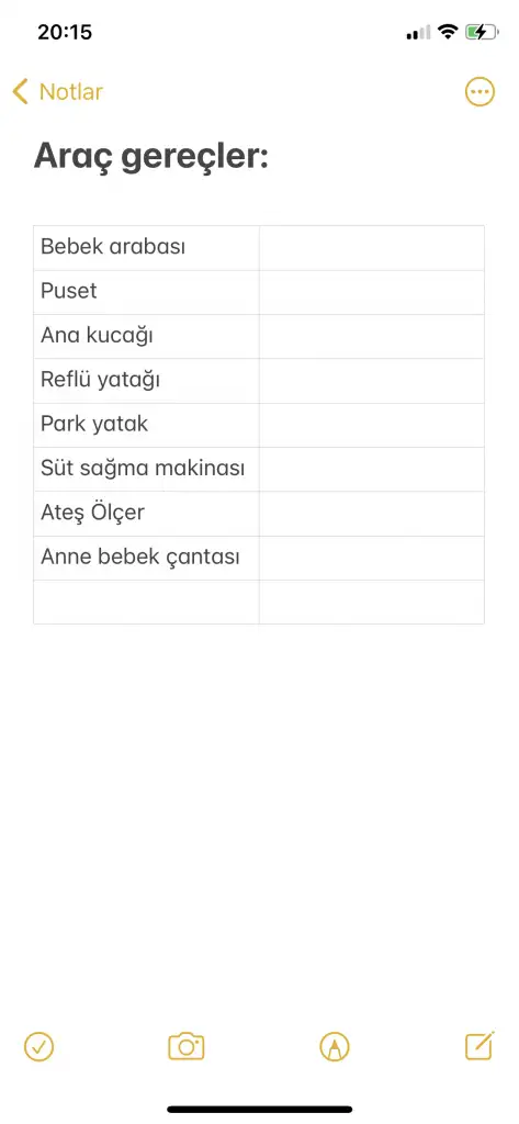 Kizlar bu da benim yaptigim liste. Paylasimamiz onemli eksiklerimiz varsa fikir oluyor 😊