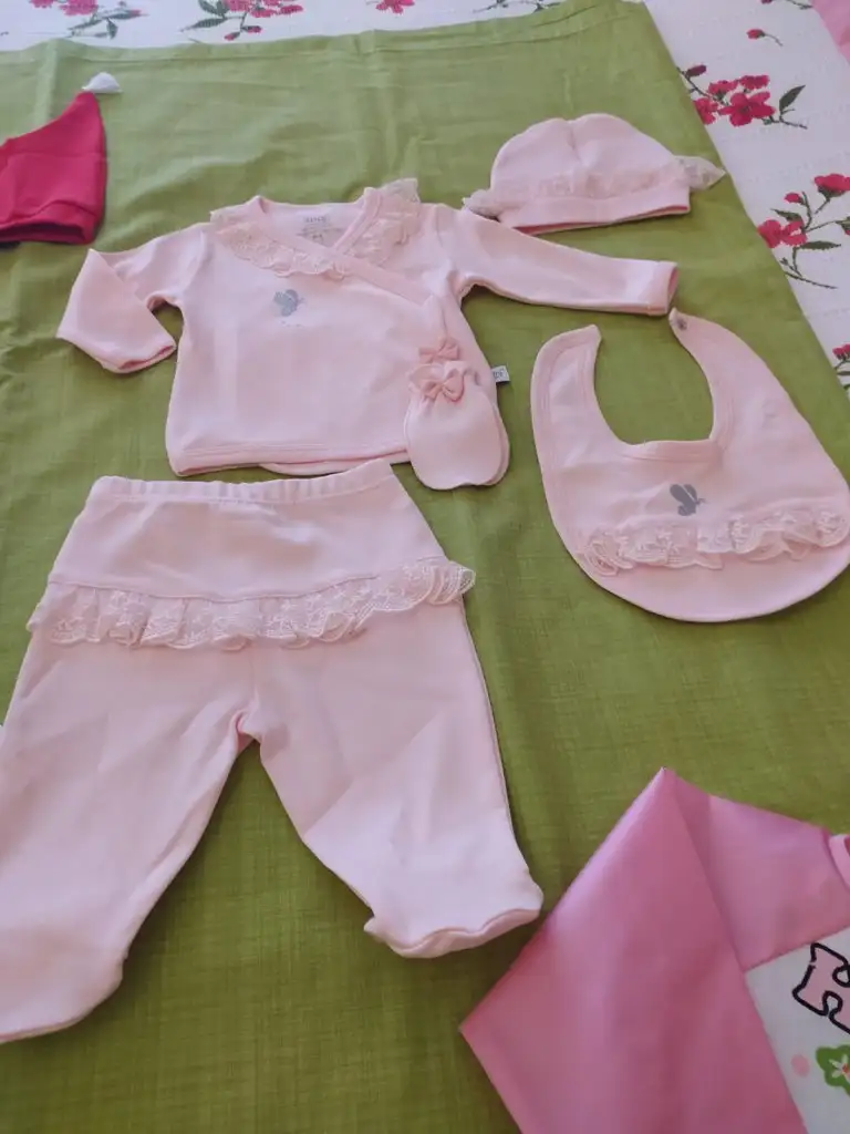 Kızlaaar aldığım kıyafetlerin bir kısmı teslim edilmiş malzeme kalitesi çok güzel diyor annem ama hastane çıkışı gibi olan 5li takımlar maksimum 40 ına kadar kullanılırmış küçüklermis baya haberiniz olsun🙏🏻 16.haftadan sonra benim kız, oğlan olmaya karar verirse de üzgünüm valla bunları giymek zorunda ilk 40 gün çok beğendim çünkü 😂😂