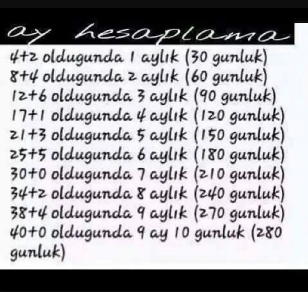 Bu tabloda tam dogru degil aslinda, en doğrusunu atiyorumAy valla çok karıştırıyorum ayımı soranlar oluyo hafta söylüyorum yani kaç aylık diyolar öylece kalıyodum