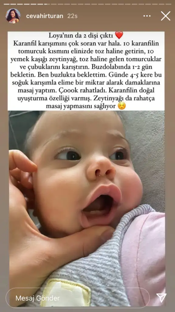 Tarif vereyim sanaValla ben doktor gününü beklıyorum çünkü benımkıde aynı ellerıne eldıven takıyorum eldıvenler ıslak kollarına ındı ıslaklık salyadan o el agza gidiyor emzık verıyorum oyalansın dıye atıyor onu gene elı agzında diş damakları kaşınmaya baslamıs olabilir bende öyle dusunuyorum çenesine sinir yerlerıne masaj yapmaya basladım karanfılı suda bekletip damaklarına sürüyorum iyi gıbı oluyor bida başa donuyoruz anne sütüde verıyormusun sadece mamaysa bılemıcem belkı anne sütün yogunlaşmıstır dıcektim .