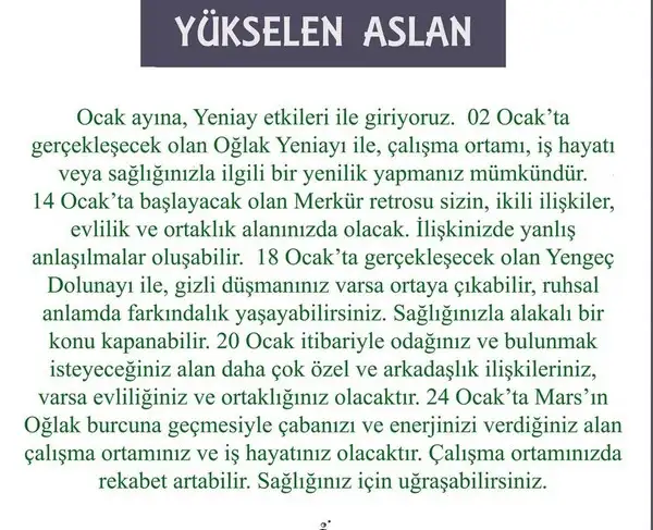 Aslan Burcu Aylık Yorum (OCAK 2022)