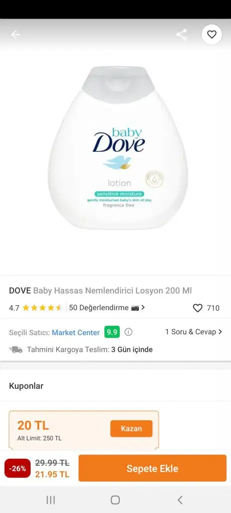 Dördüncüsü vucut losyonu vucudu çok kuru benm bebişimin. Dove baby vucut losyonu çok işine yaradı yumusacık yapıyor cildini .