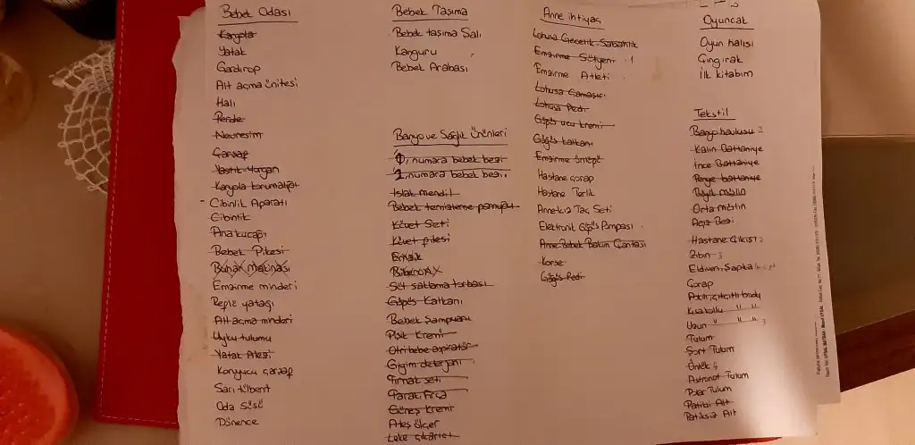 ha tamam ondan sana alınacak bişey yok gibi geliyoBen kızımda da liste yapmamıştım 5 sene önce,şimdi de düşünmüyorum..eksikler aklıma geldikçe almıştım, alıyorum..