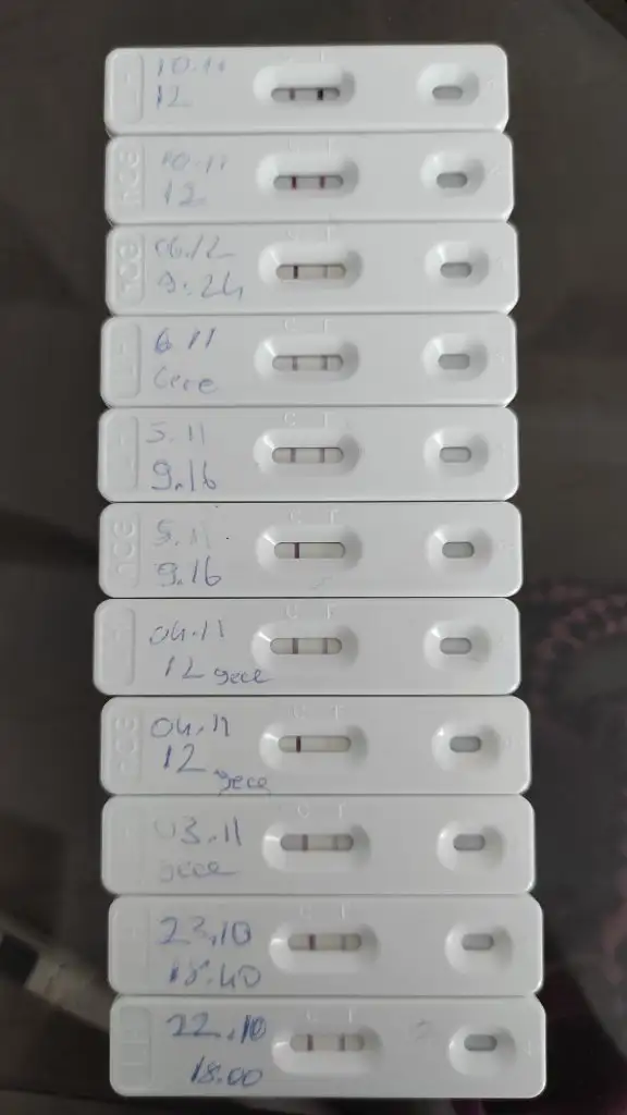 Benim dün 599.65 verdi bugün 700'ü geçmiştir diye düşünüyorum. Bugün koyu gördüm hcg'yi ve ovulasyon T daha koyu oldu. Sat 10 EkimKuzu ben dün akşam yaptım elimde kalanı. Hala silik çıkıyohani bir kırmızı değil yani bildigim silik pembe. Bhcg 175. Testin talimatında 30 olsa okuyor diyor ama 175te siliik bir çizgi çıkıyor