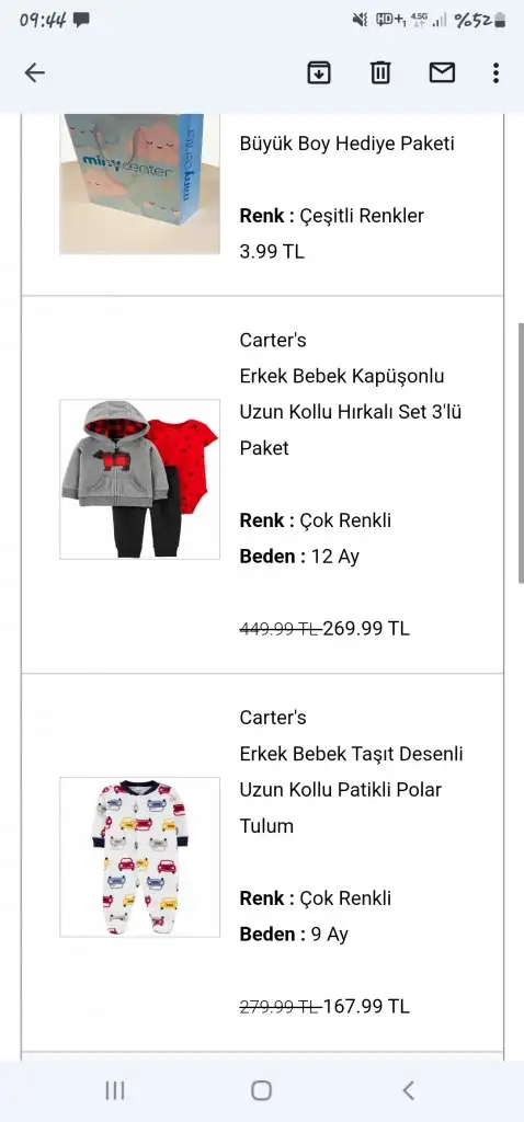 Trendyoldakı bazı carters ürünlerinde indirim vardı.kaldıysa bakabilirsin:)Günaydın siparişleri verdim4.yaparim artık bu kadar alışveriş boşa gitmesin