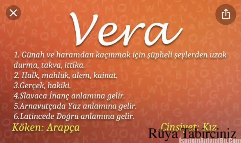 Benim ilk kızımın ismi VeraHali hazırda çocukları olan annenlerO kadar isim konuşuyoruz, sizin ilk/ikinci çocuklarınızın isimleri ne Bir de nasıl karar verdiniz bir anlatsanız O kadar deşifre olmazsınız yahu kaç milyonluk ülke Hem fikir olur bize de. Çok merak ediyorum o güzel evlatlarınızın isimlerini