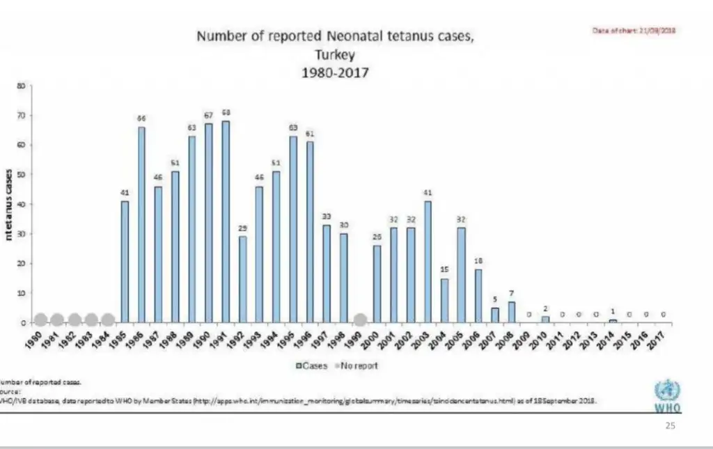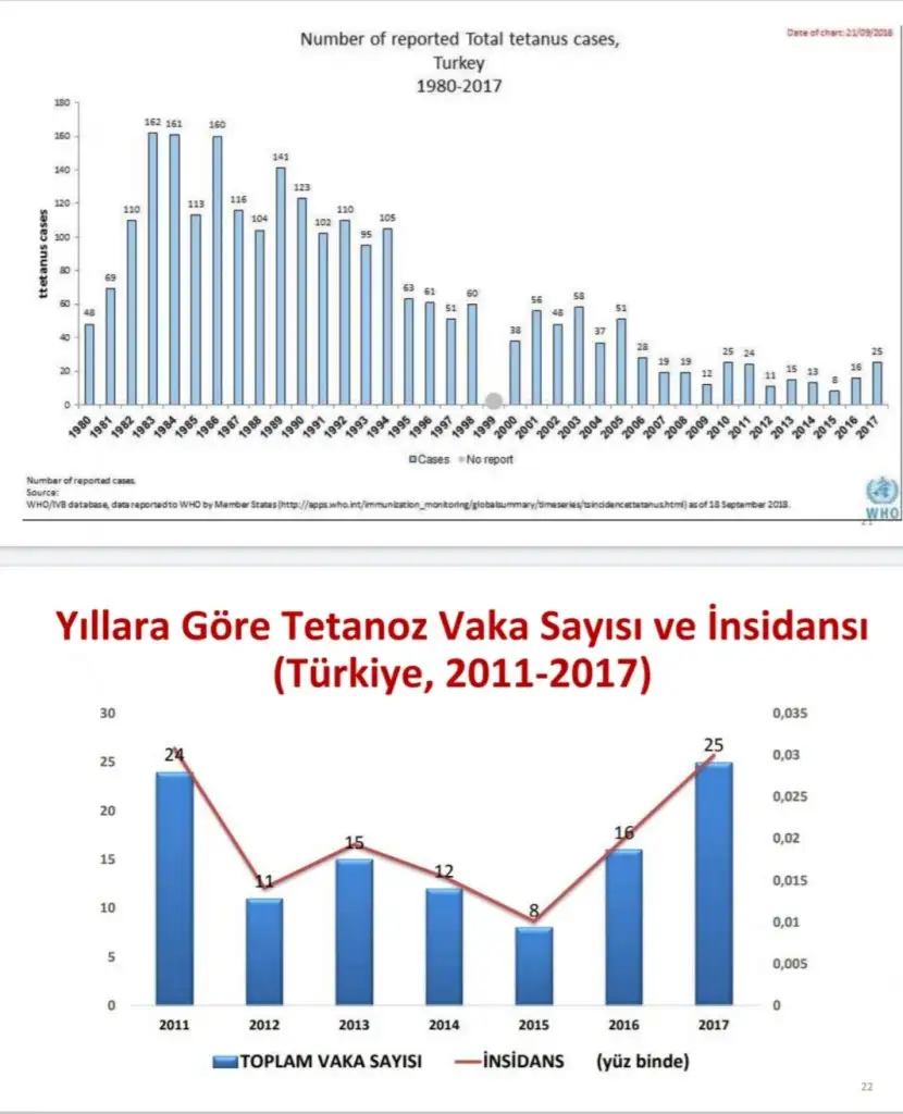 2017ye kadar vaka sayıları. Neonatal olan yenidoganlarda vaka sayısı. Çok düşük. Ha tabii o risk seni gelir bulur ayrı.Pek çok hastalık için bundan fazla risk var. Yaptırınca kötü bir şey olacağına da inandığımdan değil. Yıllardır yapılıyor. Internette sayisiz araştırma ve bilgi var tetanoz konusunda, şüphesi olanlar okuyabilir.Aaaaa neden ne yazıyodu