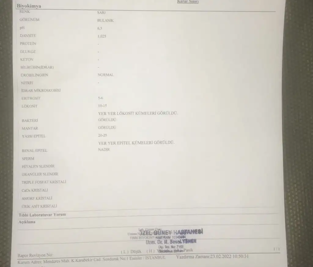 Sana ne verdi doktorİdrardan sonra ağrı yaşamandan belliydi zaten. Bana da oldu çünkü o.