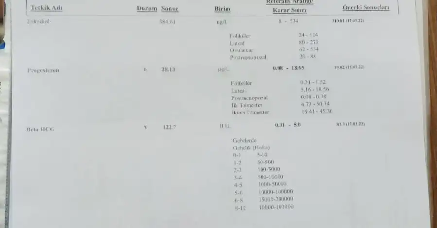Kimyasal sanırımArkadaşlar sanırım benim yolunda gitmiyor hamileliğim14. Gün 83.3’ten 18. Gün 122.7’ye çıkmış. Daha doktorum yorumlamadı.