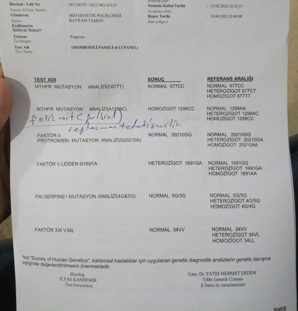 Benimde faktör 5 ve 2 normaldi .şu diğer ikisi heterozigot diyordu onları çok önemsemediler ama yine de kan sulandırıcı başlandı sonra kanama olunca kestiler