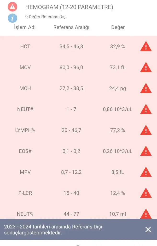 Hastane de oglen sonu kan verdik öğlen sonu olunca dr sonuca gore birşey deriz dedi ben gıdınce öğrencem di enabizdsn baktım. Dönüşte de saglik mezunu ocağında asi hariç boy kilo kafa ölçüsu alındı önceki sistemdeki kilosuna göte almamis kilo dedi sonucu direk dr dan al bi sonuçlarına gore baksın dedide ben şimdi baktım guatr 50-80 olmasi lazımken 89 çıkmış alt ise 15-60 arasi olmak yerine 13 u/l çikmis bunlara telaşlanmam lazim miki