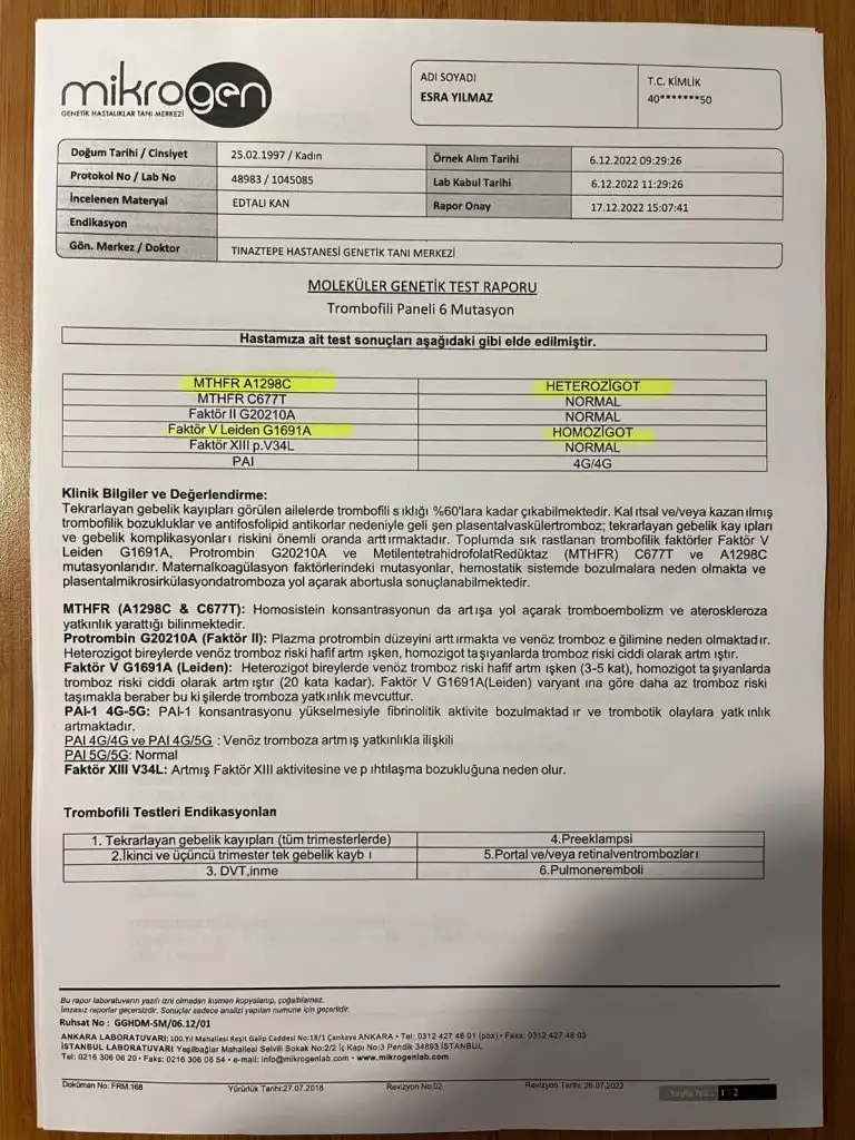 Evet resim olarak atayımCanım genetik testin nasıldı? Faktör 5 diye bişey var heterezigot falan mıydı? Bnm de sanırım öyle de beni aydınlatır mısın:)