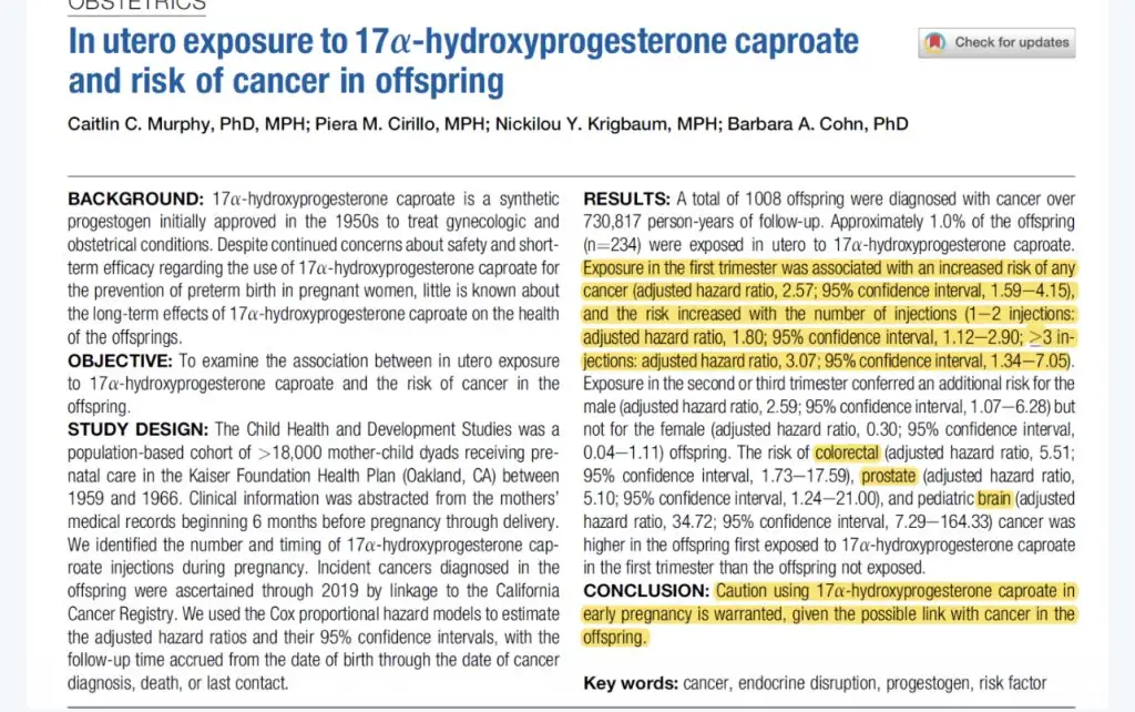Bakarsaniz da 730000 kisiden 1008 kiside canser goruluyor ki bu hydroxe-progesteron