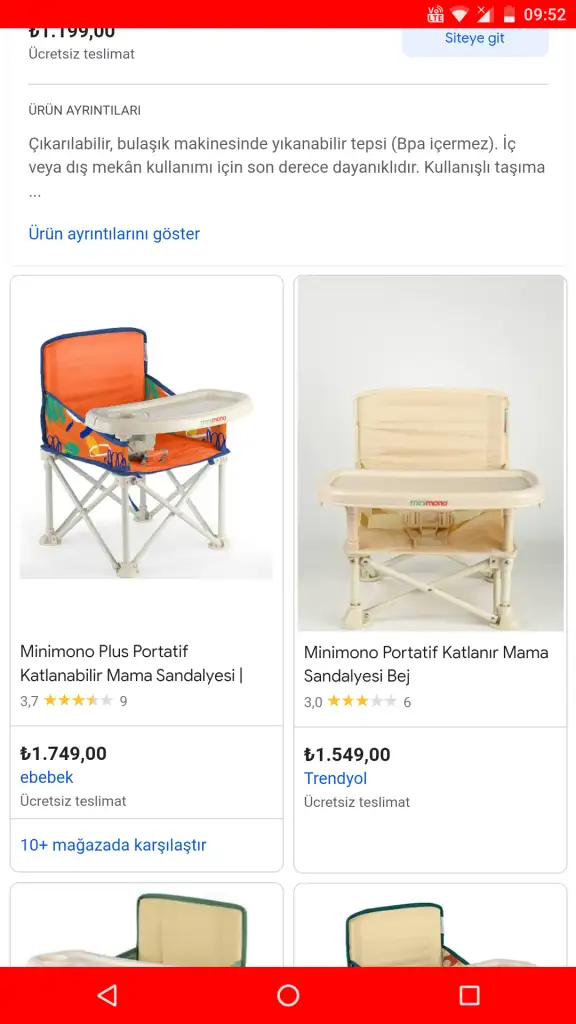 Bir de ben aile büyüklerine giderken annemde kullandığım park sandalyesi tarzında bir sandalyem var minimononun onu götürüyorum, önünde masası da var. Sandalyeye bağlama aparatı da var, bakabilirsin. Ben genelde evde yerde kullanıyorum.
