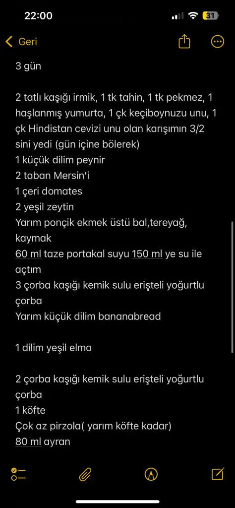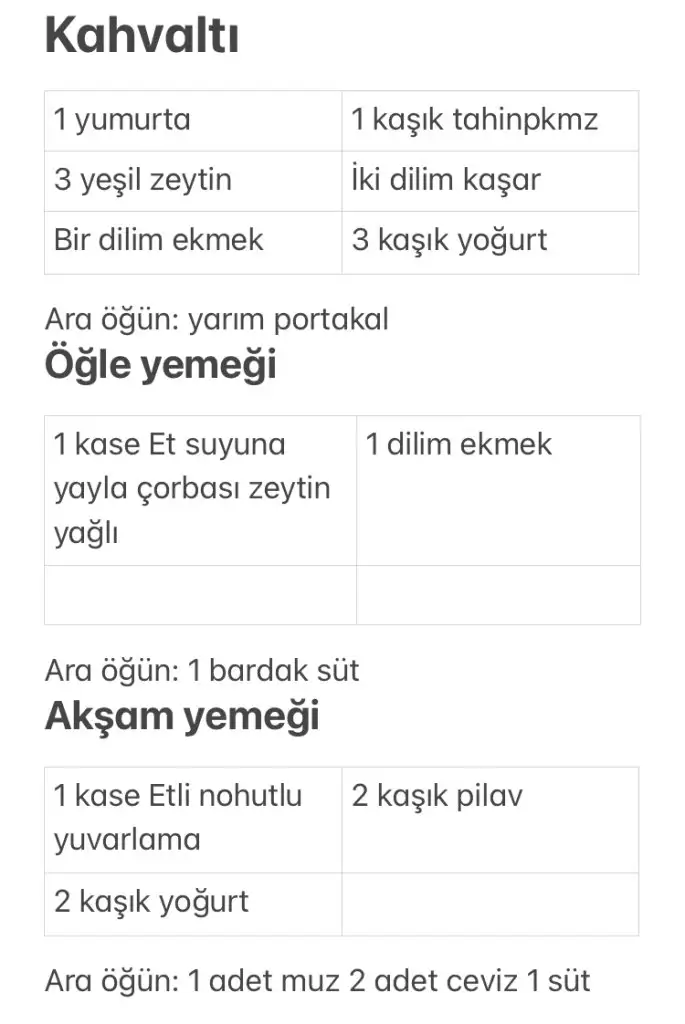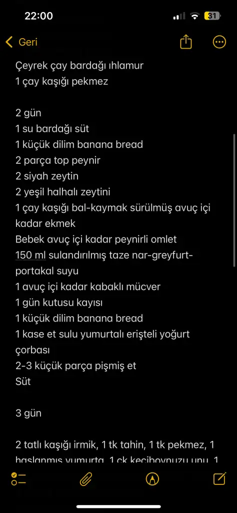 @ksmbnmcbm canım doktorun bana verdiği örnek liste bu. Bu kadar mı yemesi gerek diye sorduğumda “hayır beslenme kişiye özeldir bu siz yazarken açıklama örneği olsun “ diye dedi. Buna göre benim kızın 3 günlük süreci de bunlar .