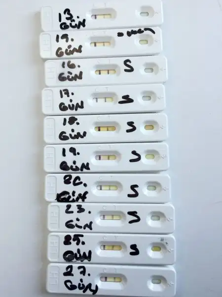 YA BENİM İDRARDA ÇIKMIYO 3 KERE HAMİLE KALDIM 2 AY ARAYLA 3ÜNÜDE KANDA ÖĞRENDİM İDRARDA ÇIKMIYO NEDENSE O YÜZDEN OVULASYON TESTLERİNE SARDIM BENDE BU AY İLKKEZ YAPIYIM DEDİM BENİM BÜYÜN AY BÖYLEYDİ HERKESİN SİLİKLEŞMİŞ BENİM HEP KOYU KALDI ACABA SORUN MU VAR BENDEbncede sen hamilesn bnmki bu kadar koyu değil silik çıktı bgn test yap bklm cıkar kesin