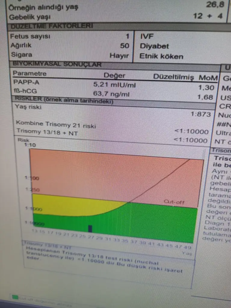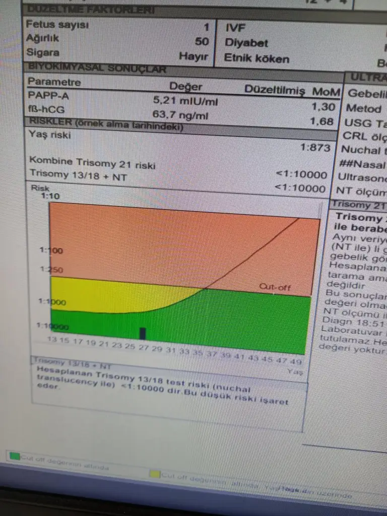 Cut off İn altında diye bende iui gibi yorumladım bakalım yarın sabaha doktora randevu aldımYaş riski yüksek değil ama burda total riski göremedim ama enaşağıda düşük risk yazıyor