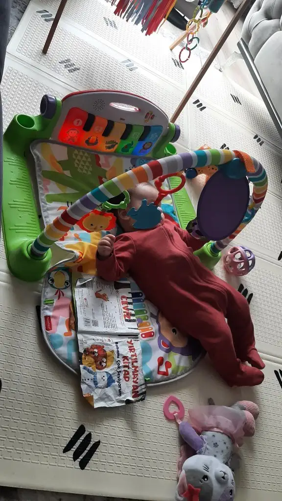 Yok etmiyordum bı bakayım bizim ki de bugün oyuncağına doğru bı beş santim ittirdi kendini totoyu dikti top gibiVallahi kendi ekseni etrafında dönüyor uzağa da gitme arka ayaklarına bir şey değerse bayağı ittiriyor kendini öne doğru Ayağında bir şey yoksa da çok minik minik sürünüyor Yani çok da ileriye gidiyor diyemem ama oyuncağı falan uzanmaya çalışıyor o zaman sürünüyor bir iki santim... Instagram'da ikidelilibideli var Beyza Hanım takip ediyor musunuz bilmiyorum ama onun çocuğu çok komik sürünüyor ya bayılıyorum emekleme gibi bir şey Ama resmen sürünüyor