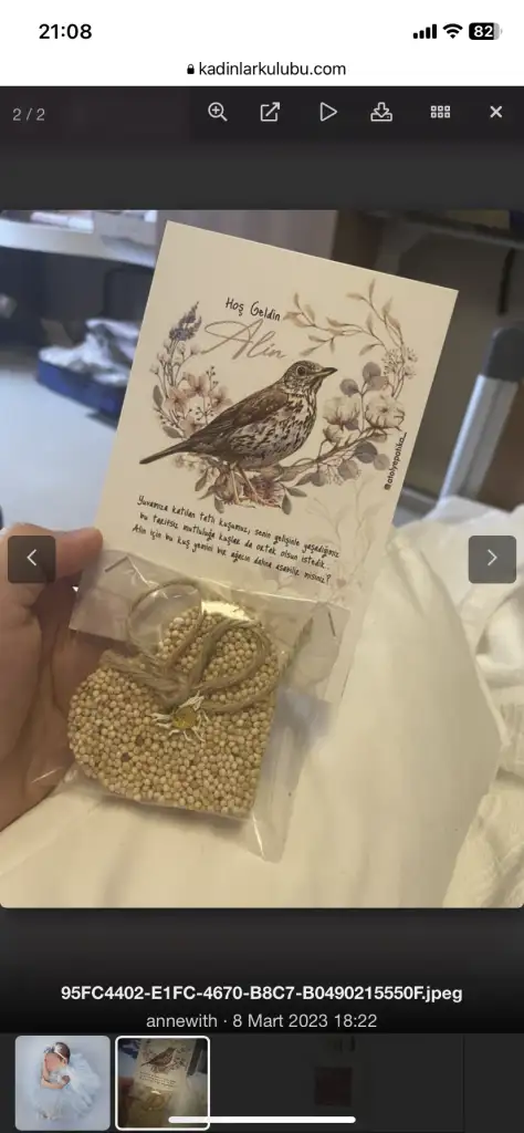 Kızlar selam, hediyelik konuşuluyor madem ben de katılayım :) ben açıkçası magneti saçma buluyorum evet çok tatlı şeyler var ama anneanne dede vs dışında sizin evladınızın adını kim niye dolabına assın ki ne işe yarar diye düşünüyorum :). Çikolata da mevsimsel olarak erir mi acaba düşüncesi var. Ben trendyoldan boş şişe aldım fısfıslı onları doldurup sticker ve kurdeleyle süsleyeceğim en azından bir amaca hizmet eder at çantaya kullan :) şişelerin 50 tanesini 160 tlye aldım henüz boş duruyorlar. Onun dışında kapı süsümü de kendim yaptım zira beğendiğim süs 700 liraydı.. 320 liraya mal etmiş oldum. zamanınız ve azcık da el beceriniz varsa kendiniz yapın derim. Kendi yaptığı da şöyle ekleyeyim fikir olsun.