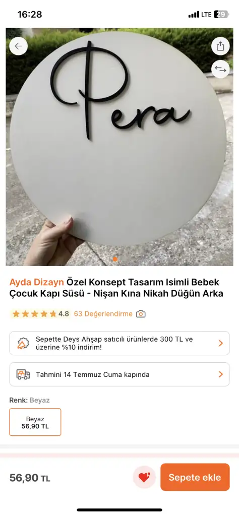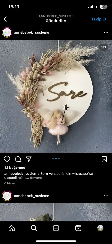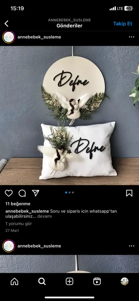 Süper canım çok beğendim , kendin yaparsan daha bi anlamlı oluyorKapı süsünü kendim yapmaya karar verdim. Hb isim ve tabla siparişi verdim. 56 tlye. Keçeden kızlar yapıyorlar ya onu annem yapacak. Kuru ve yapma çiçeklerle sade bir süsleme yapacağım. Evde çiçeklerim var zaten. Onlardan kullanmayı düşünüyorum. Ama çok çok olsa toplamda 100 tl ye halletmiş olurum diye düşünüyorum.