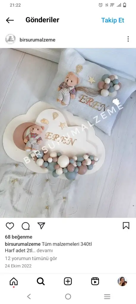 Kuzum bu ipliler pek sağlam olmuyor ben kızıma yaptırmıştım, bira adi oluyor ve çok çabuk kırılıyor harfleri vs. Bence bulutlu yaptır ben bulutlu yaptırıyorum cisemcicek_tasarım yapacak güvenilir bir sayfadır. Bugün sipariş verdim sayfaya bir bak ben bu renkleri beğendim.Anneler kapi susu icin fikirlerinizi alabilir miyim? Ben ilk baktığımdan beri hep şu buble olanlar var ya bulutlu top seklinde ayıcıklı olanlar onları beğenmiştim hatta siparis verecektim. Ama sonra bir karar değiştirdim. Yani o bulutlu olanlar biraz daha sık biraz daha büyükler için gibi geldi bugün birdenyani bebek odası için sonuçta bu o yuzden biraz daha tatlis sevimli olsa mi dedim oda yapmayı düşünmüyorum henüz yapmadık da zaten bizim odada yatağı falan. Sonra odasini yaparken ahsap füme krem renklerde bir şey istiyordum. Odasına da uysun diye düşünüyorum.ama çocuğu çok mu pinteres çocuğu yaptım şimdiden bilemedim ( çünkü yaptıracağım nevresim setleri falan da nakisli sade seyler) yani hem şık hem tatlı bir şey olsun istiyorum. Aklım bulutlu suslerden yana ama bu fotoda eklediğim diğer kapi susu de tam cocuk için çok tatlı geldi gözüme bilemedim