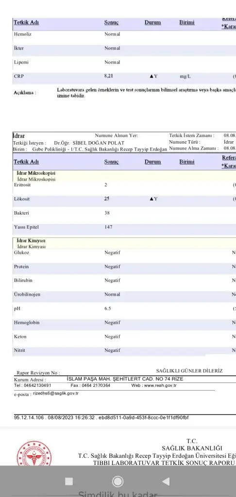 Yürürken hareket ederken ağrım olduğu için nst çektik ve idrar tahlili verdim. Sonuçlar çıktı fakat doktorumla henüz tam değerlendiremedik.