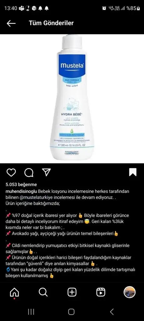 Ben bunu aldım muhendisinoglu sayfasında içeriğide paylaşılmıştıBen de losyon almamışım sen söyleyince fark ettim ne alcaz