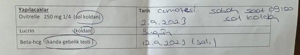 Ovirtelle içinde beta hcg var etkisi 10 gün içinde geçiyorTransfer öğleden sonra olmuşsa o günü 1. Gün olarak mı sayıyorsunuz? Yani ben geçen hafta cuma günü saat 15 e doğru işleme girdim. Bugün kaçıncı günüm diye saymalıyım?hatta şu saatbirde işlem sonrası kolumdan bir iğne yaptılar ertesi sabah 9 da yapmam içinde bir iğne verdiler çatlatma iğnesi gibi bişey dediler. O da erken gebelik testine etki eder mi derseniz? Neden soruyorum. Çünkü az önce test yaptım ve çok silik bir çizgi görüyorum. Hem iğneleri n isimlerini hemde testi eklemeye çalışacağım. Bilen varsa yardımcı olabilirse çok sevinirim